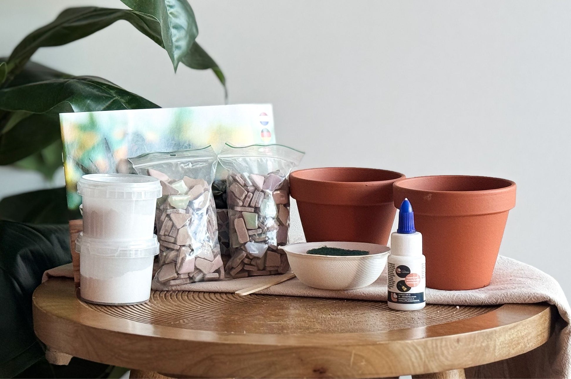 Deze creatieve DIY bundel combineert twee fijne projecten in één: mozaïek bloempotten en borduurkaarten. Een perfecte combinatie van wonen, creativiteit en een persoonlijk gebaar. Ideaal voor wie houdt van knutselpakketten voor volwassenen en graag iets maakt met zijn handen.