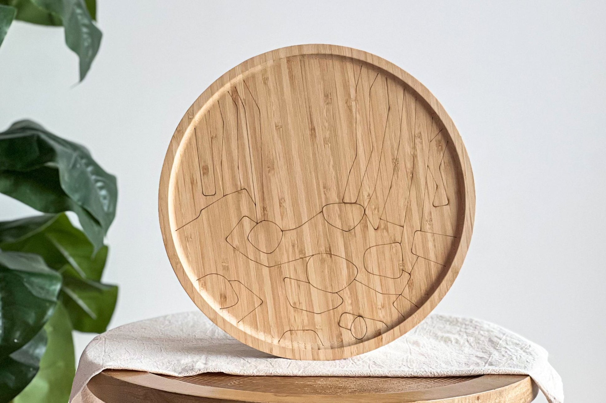 - Houten schaal (Ø 30 cm) met gegraveerde lijnen