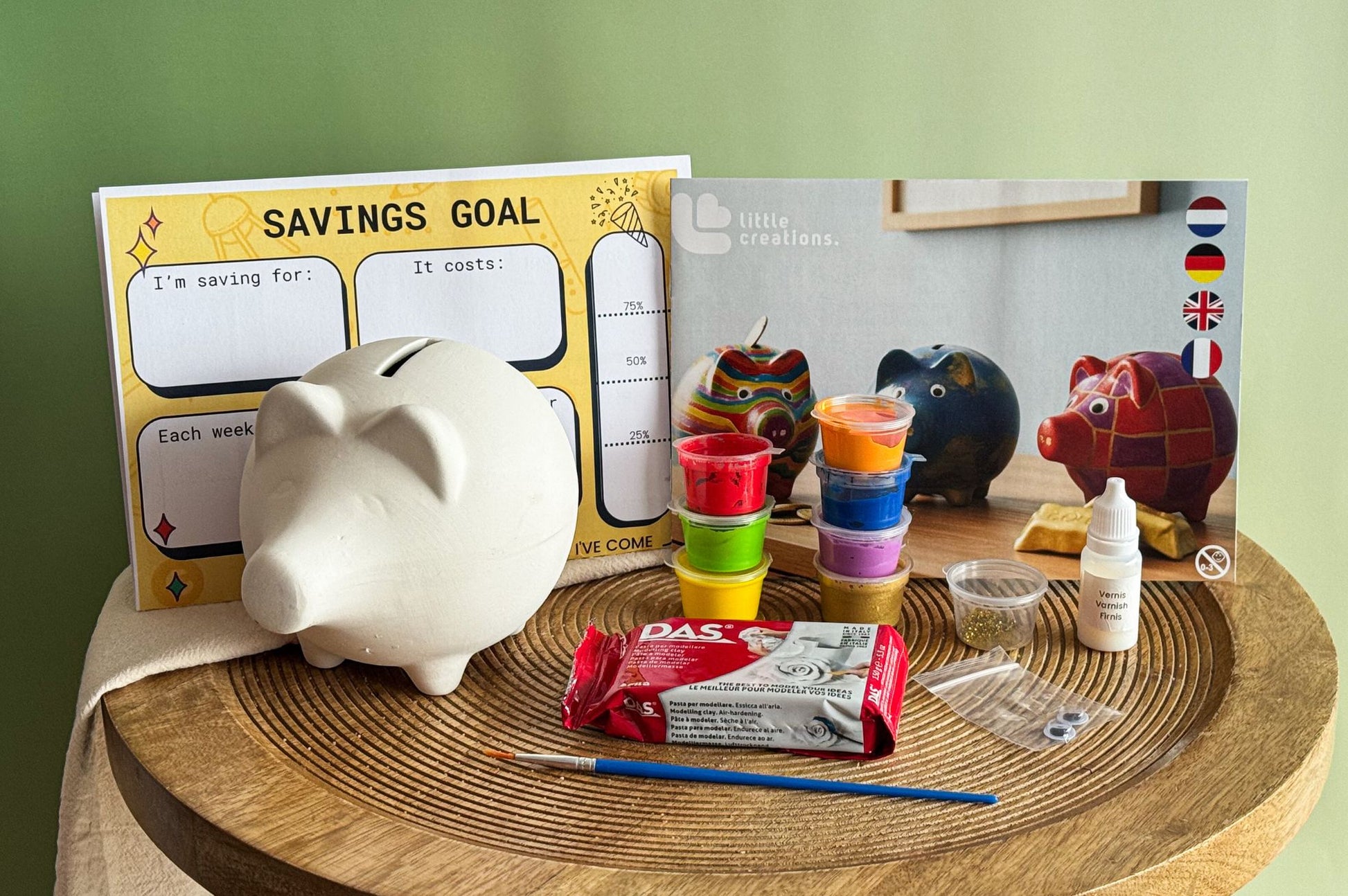 Met dit knutselpakket voor kinderen wordt sparen leuk én creatief! In dit complete DIY-pakket ga je een spaarvarken maken dat niet alleen prachtig wordt versierd, maar ook écht te gebruiken is als spaarpot. Een perfecte combinatie van knutselen met kinderen, creativiteit en spelenderwijs leren omgaan met geld.