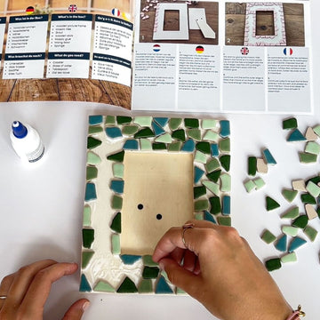 We use FSC-certified bamboo and scratch-free, rounded mosaic tiles with a glossy glaze. Ideal for me-time, a girls’ day activity, or a personalised gift.