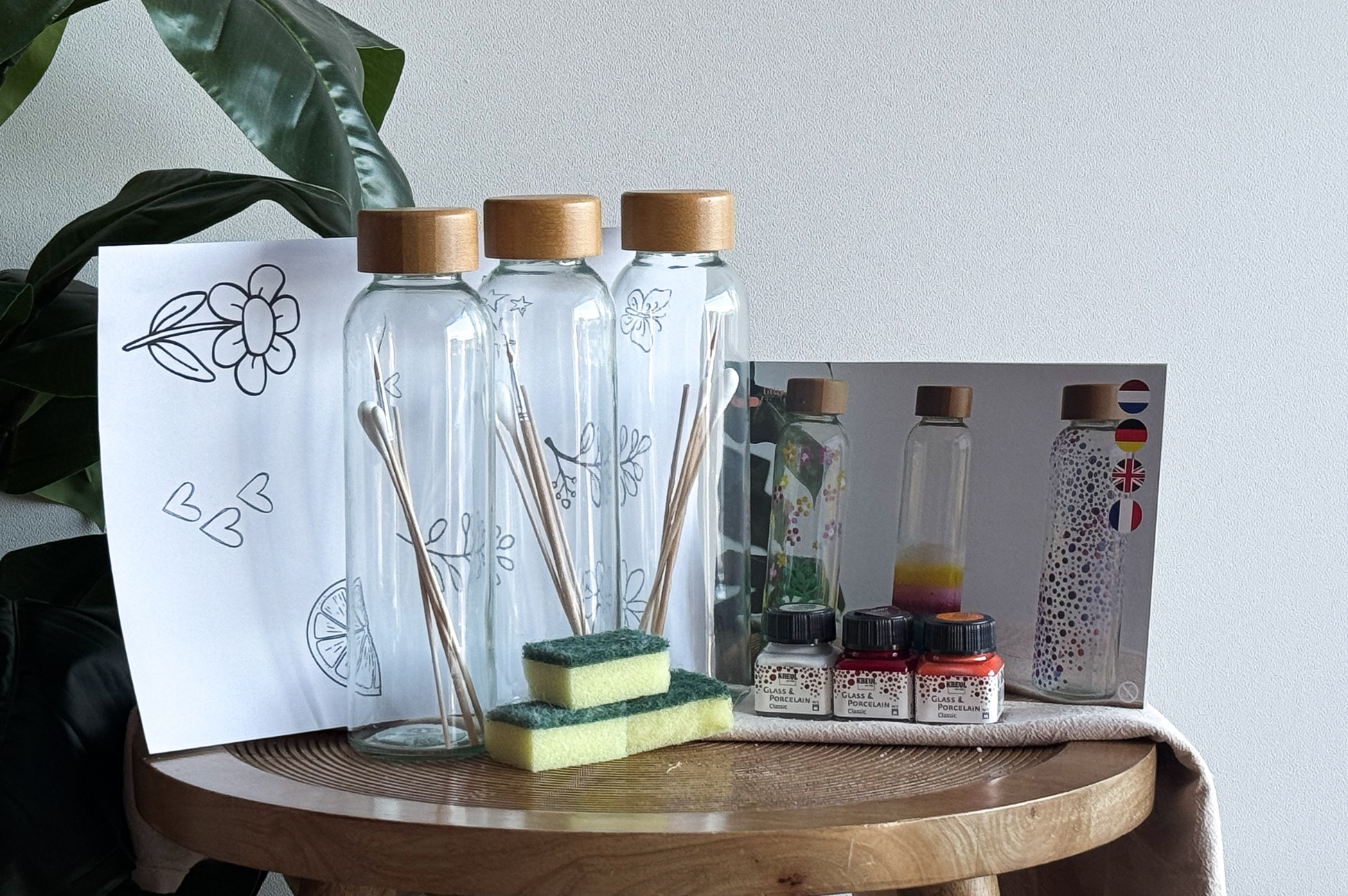 Personalize your own glass water bottle with this creative DIY kit! Drinking becomes much more fun with your own DIY water bottle decorated with glass paint!