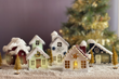 DIY Package Wooden Christmas House Burgundy Red