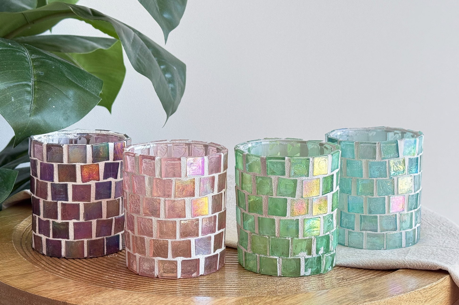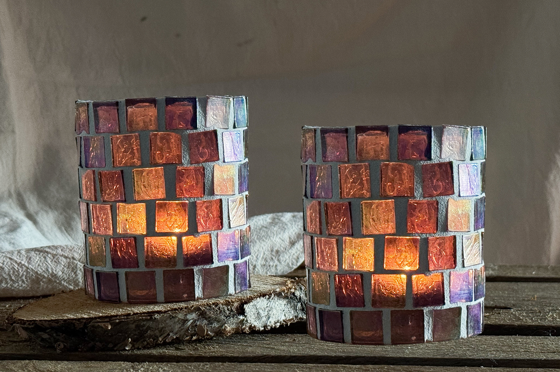 Create atmospheric glass mosaic tealight holders with the DIY Glass Mosaic Tealight Kit for creative moments alone or with friends. Perfect as a gift or for your home.